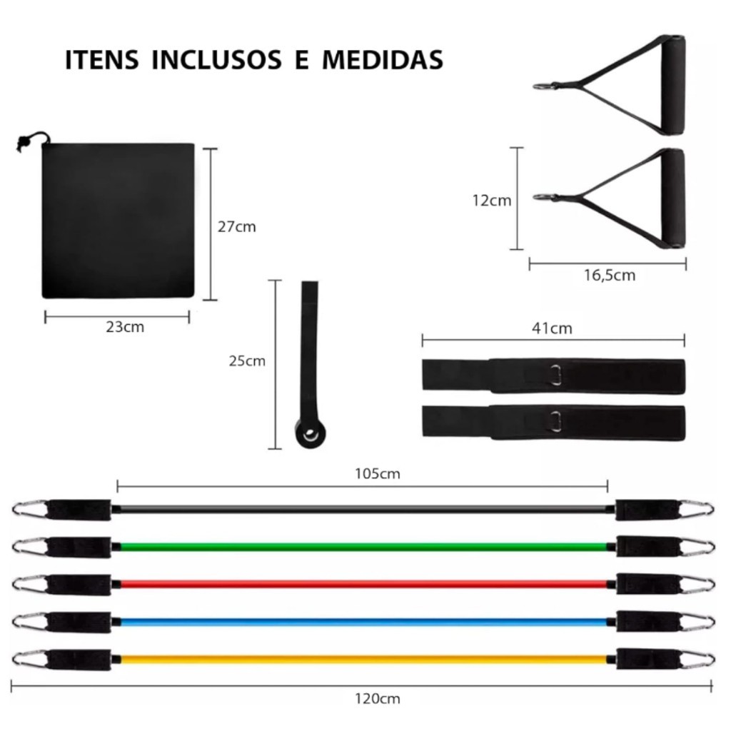 Kit 11 Peças Elástico Extensor Exercício Funcional Treinamento Pilates Academia Acessórios