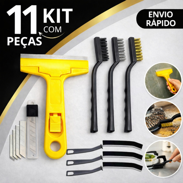 | Kit 11 Peças Escova Aço Latão Nylon + Raspador Com 4 Lâminas Multiu... este produto | R$ 12,90 | 57% | 4.9/5 | 257 |