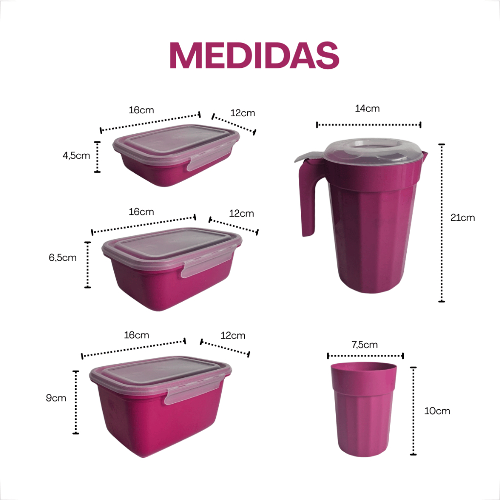 Kit 11 Peças de Potes, Copos e Jarra Plástica com Tampa Cristal Organize sua cozinha com praticidade e estilo! Este kit completo de potes, copos e jarra plástica é perfeito para armazenar, servir e manter seus alimentos sempre frescos. Com design moderno e tampa cristal, traz mais funcionalidade e elegância para o seu dia a dia. BENEFÍCIOS DO MATERIAL - Produzido em plástico resistente e de alta durabilidade - Livre de BPA, seguro para contato com alimentos e bebidas - Leve, fácil de limpar e reutilizável - Tampa cristal que permite visualizar o conteúdo sem abrir BENEFÍCIOS DO PRODUTO - Ideal para o dia a dia, festas ou viagens - Ajuda na organização da geladeira e da cozinha - Jarra prática para sucos, água ou refrescos - Potes com diferentes tamanhos para armazenar diversos tipos de alimentos ITENS INCLUSOS (Kit 11 Peças) - 2 potes de 500 ml (16 x 12 x 4,5 cm) - 2 potes de 750 ml (16 x 12 x 6,5 cm) - 2 potes de 1000 ml (16 x 12 x 9 cm) - 1 jarra de 2L (14 x 21 cm) - 4 copos de 300 ml (7,5 x 10 cm) DESTAQUES - Tampa com encaixe firme e seguro - Ideal para uso diário - Produto leve e empilhável, economiza espaço Garanta o seu! Perfeito para presentear ou renovar suas utilidades domésticas. Compre agora e receba em casa um kit completo de qualidade e praticidade.
