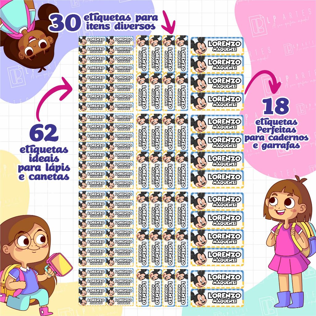 Não Perca Mais Tempo! Organize seus Materiais Escolares com Nossas Etiquetas Adesivas! Está cansada(o) de: - Perder tempo procurando livros e materiais? - Ter que substituir itens perdidos? - Ter uma mesa bagunçada e desorganizada? Nossas etiquetas adesivas escolares são a solução perfeita! Com tamanhos práticos (1,5 x 4,5 cm / 2 x 6 cm / 3 x 9 cm) elas são ideais para: - Identificar livros, cadernos e pastas - Rotular materiais diversos - Personalizar itens como: Garrafas e Lancheiras Nossas etiquetas são: - À prova d'água (Podem ser lavadas e colocadas no freezer ou micro-ondas) - Fáceis de aplicar e remover - Em Vinil adesivo forte e durável (não borram, desbotam) - Feitas com corte eletrônico Compre agora! - Ganhe tempo e eficiência - Reduza o estresse e a bagunça - Mantenha seus pertences organizados e fáceis de encontrar Identifique seus materiais de estudo com nossas etiquetas escolares. Escolha um de nossos temas nas fotos do anúncio ou pergunte sobre outro tema. Após a compra escolha envie o nome no chat. Atendemos de seg. a sex. das 13:30h às 19:00h (exceto feriados) ** Atenção: Alterações nas cores podem ocorrer na visualização de um monitor para o outro. ** ** Atenção: O não envio do nome dentro prazo de 48h, resultará no envio do produto sem personalização. **