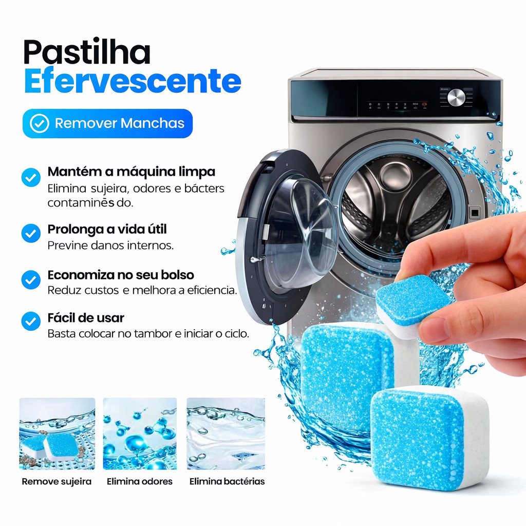 Kit 12/24/30 Pastilhas Limpadoras para Máquina de Lavar Roupa Higienização Profunda