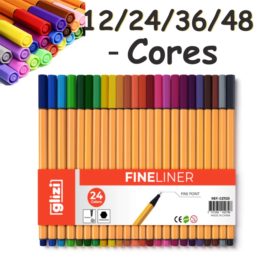 kit 12/24/36/48 Canetas Coloridas Fine Line Ponta Fina 0.4 mm