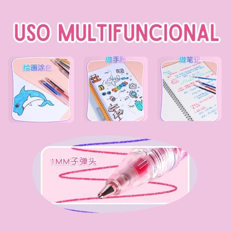 Kit 12/24/36/48 Canetas Gel Coloridas com Glitter Perfumado Tinta Glitter Metal