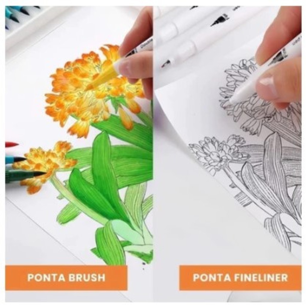 Kit 12/24/36/48 Cores Caneta 2 em 1 Brush Lettering e Ponta Fina Dual Pen Canetinha Colorir Desenho