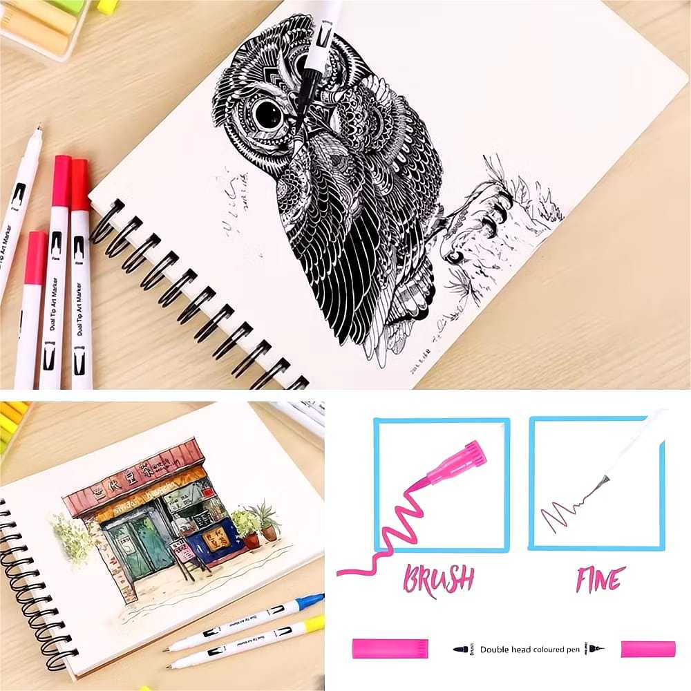 Kit 12/24 Brush Caneta Pen Duas Pontas Dupla Pincel Fineliner