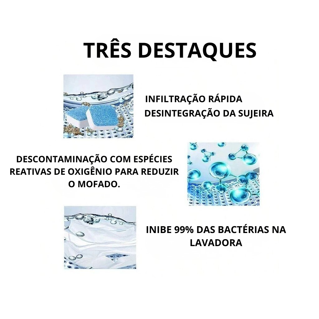 Kit 12/24 Limpador de Máquina de Lavar em Pastilha | Elimina Mau Cheiro | Manutenção da Lavadora