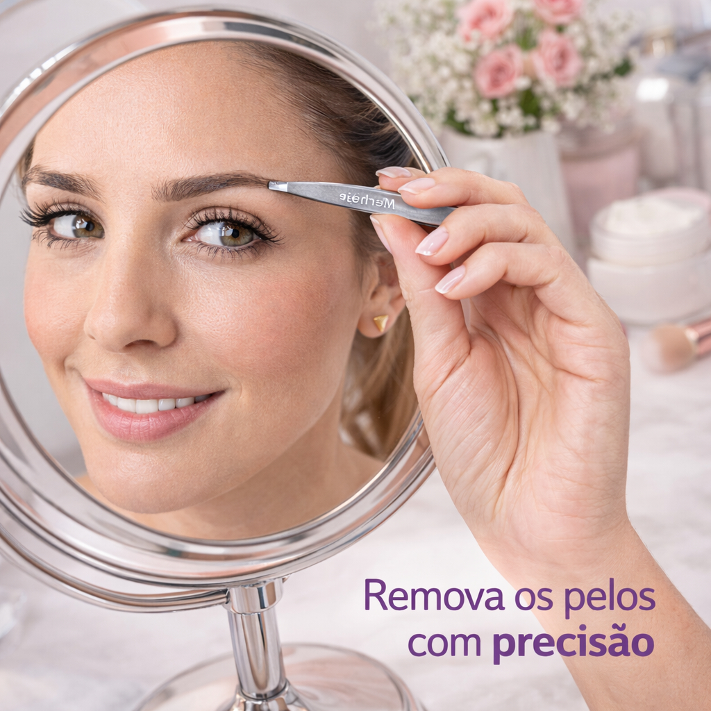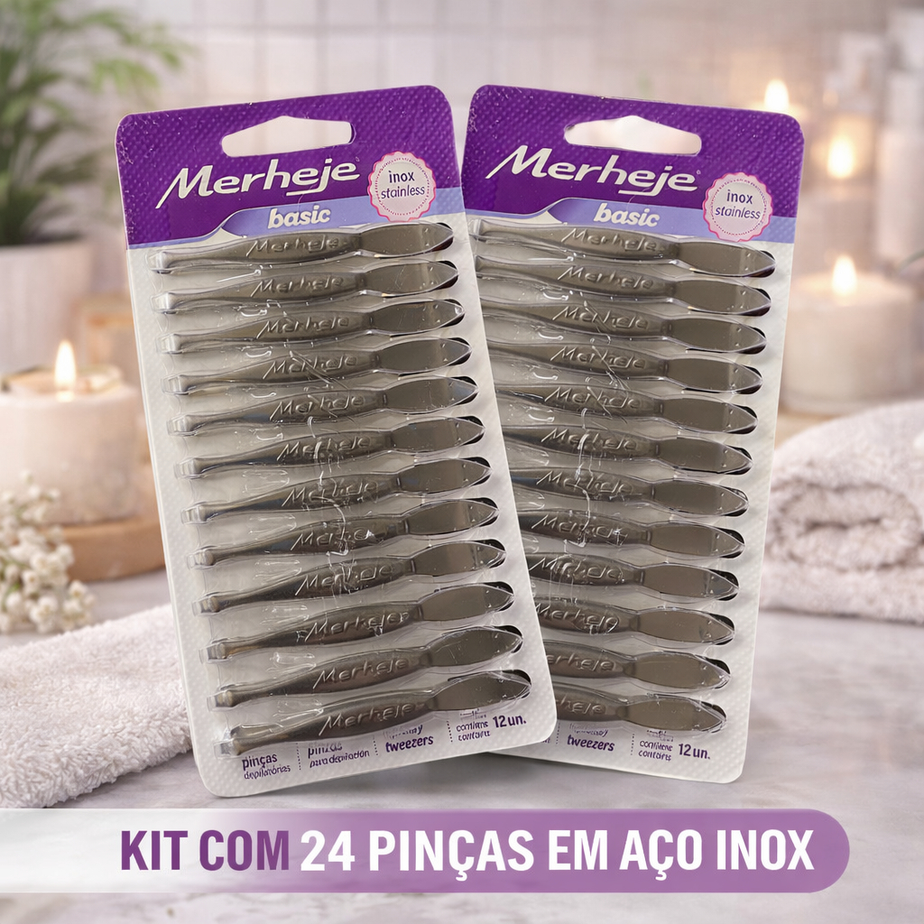 Kit 12/24 Pinça Básica Original Merheje Aço Inox Ponta Reta Profissional para Sobrancelha Depilação Uso pessoal Higiene