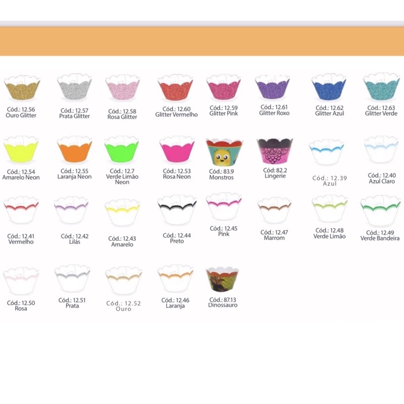 kit 12~60 Wrappers Saia Para Cupcake Doces Festa + de 100 Opções de Cores//