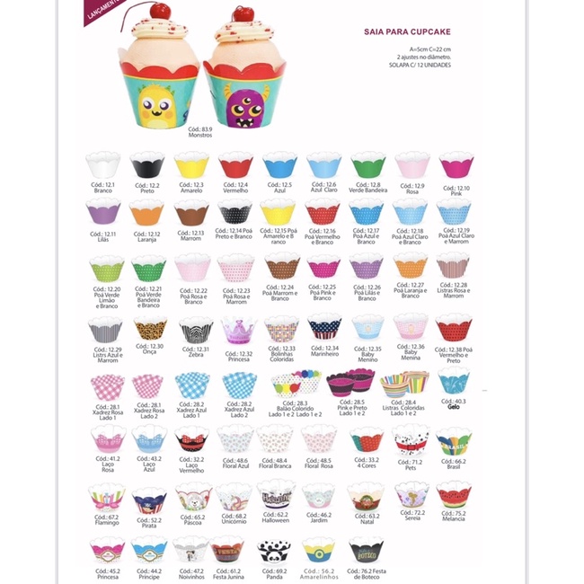 kit 12~60 Wrappers Saia Para Cupcake Doces Festa + de 100 Opções De Cores//