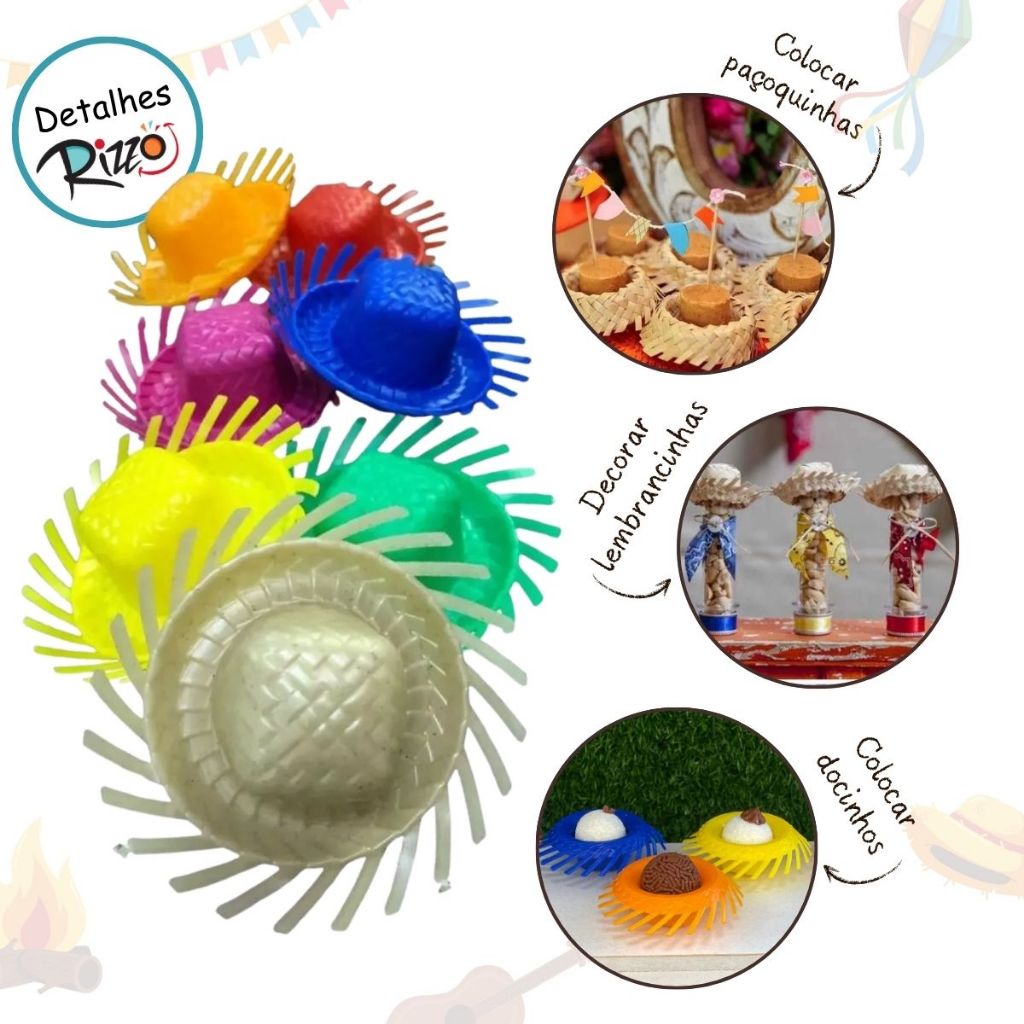 | KIT 12~72 Mini Chapéu Festa Junina Forminhas Doces Diversas Cores 7... este produto | R$ 20,90 | — | 5.0/5 | — |