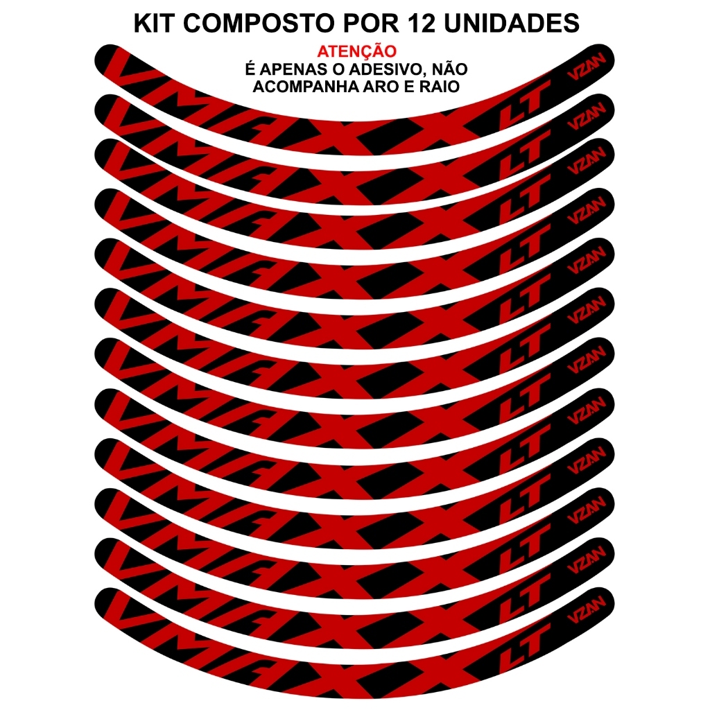 Kit 12 Adesivos Vmaxx Roda Bike Vbrake e Freio a Disco Bicicleta Ciclismo Aro 24 Aro 26 Aro 29
