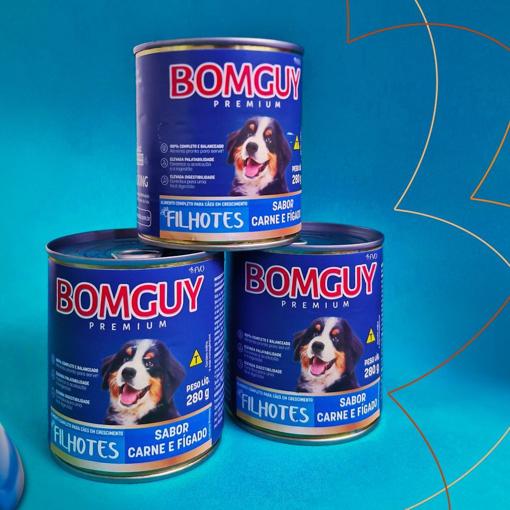Kit 12 Bomguy Premium Patê Sabor Carne e Fígado Ração Úmida para Cães Filhotes 280g FVO