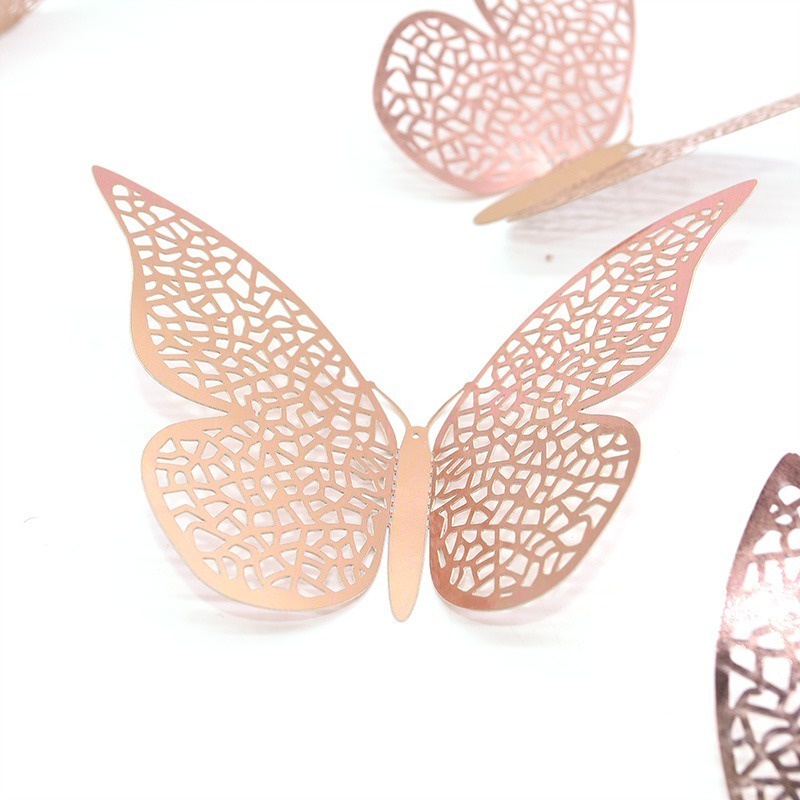 Kit 12 Borboletas 3d Vazada Decorativa Adesiva Rose Bob7