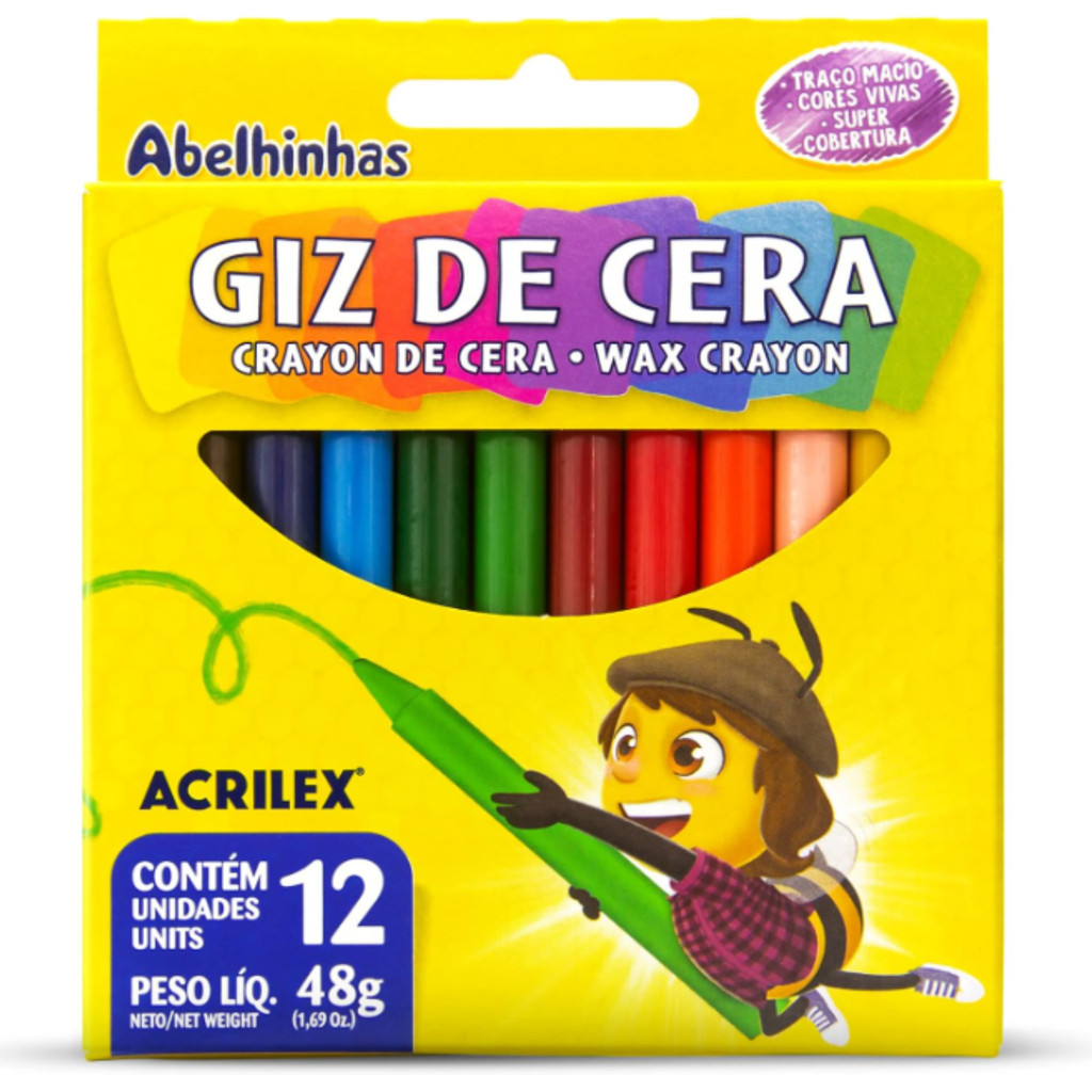 Apresente mais cor e criatividade às atividades das crianças com o Giz de Cera Acrilex 12 Cores! Produzido com ceras de alta qualidade, oferece cores intensas, aplicação suave e excelente cobertura — ideal para desenhos, trabalhos escolares e atividades artísticas na pré-escola. Este pacote conta com 12 estojos individuais, cada um contendo 12 cores vibrantes, garantindo praticidade e economia para escolas, projetos pedagógicos e revendas. Com a qualidade Acrilex, o giz proporciona traços firmes, boa fixação no papel e não quebra com facilidade, sendo perfeito para o uso infantil.