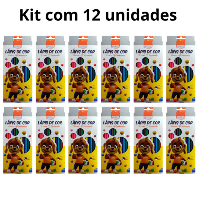 Kit 12 Caixas Lápis De Cores BRW 12 Cores