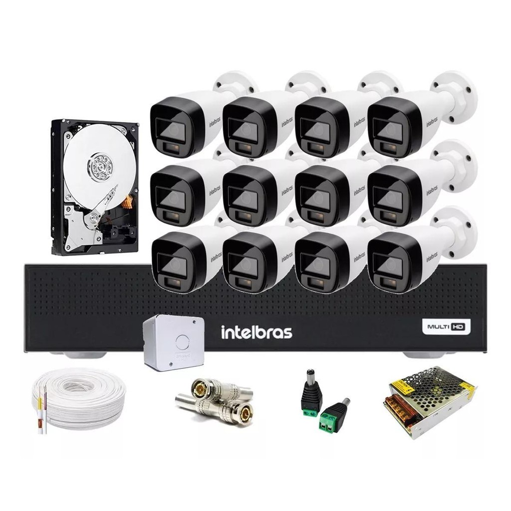 Kit 12 Cam Intelbras 1120b Full Color Dvr 16ch Hd 1 Tera
