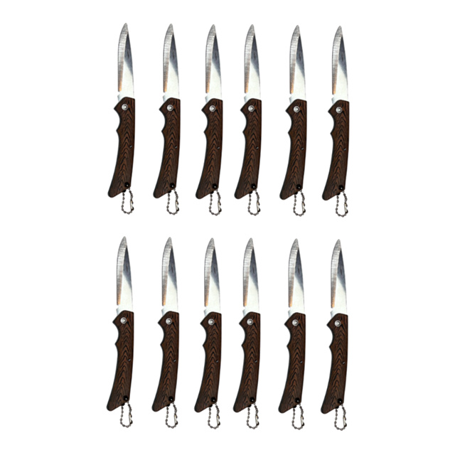 Kit 12 Canivete Chaveiro Especificações: - Lâmina: 7,5 cm - Fechado: 9,5 cm - Comprimento Total: 17 cm - Material lâmina: aço inoxidável - Peso: 22g