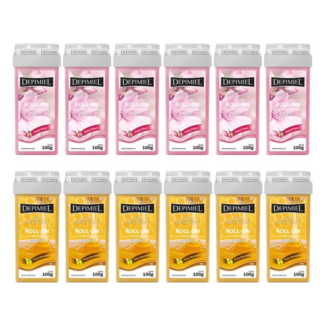 Kit 12 Cera Roll-On Suave e Clássica Mel Depila Depimiel