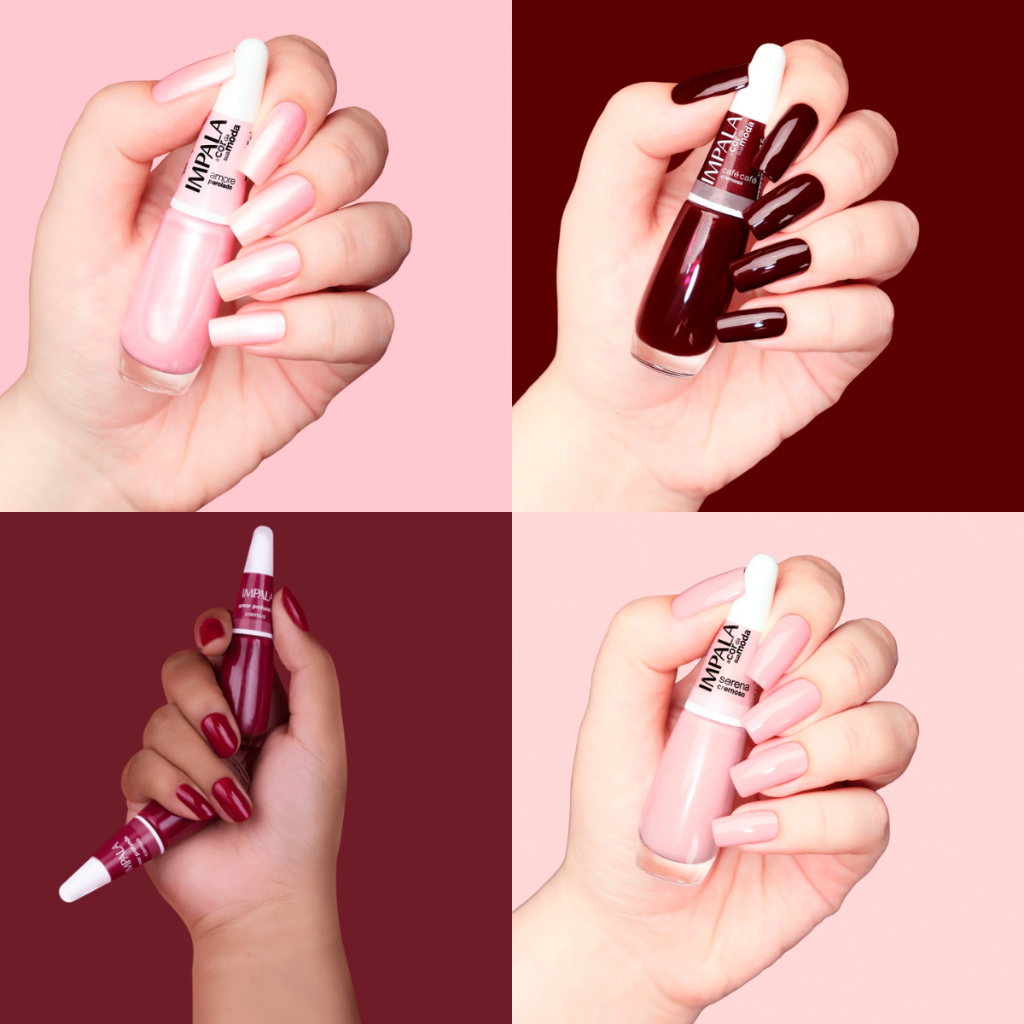 KIT DE ESMALTES Este kit de esmaltes foi desenvolvido para quem busca unhas impecáveis, com acabamento sofisticado e toque aveludado. Sua fórmula cremosa proporciona aplicação uniforme, alta cobertura e excelente aderência, garantindo um visual elegante desde a primeira camada. O resultado são unhas bem definidas, com aparência refinada e secagem equilibrada, ideais tanto para o dia a dia quanto para ocasiões especiais. A textura facilita o controle durante a aplicação, evitando manchas e marcas de pincel. O brilho suave valoriza as unhas e mantém o aspecto bonito por mais tempo, enquanto a composição ajuda a preservar a integridade da esmaltação, oferecendo maior durabilidade e resistência ao desgaste cotidiano. Modo de Uso Inicie com as unhas limpas, secas e lixadas no formato desejado. Aplique uma camada de base para proteger as unhas e melhorar a fixação do esmalte. Aplique uma camada fina do esmalte, cobrindo toda a superfície da unha. Aguarde a secagem e, se desejar, aplique uma segunda camada para intensificar o acabamento. Finalize com um top coat para aumentar o brilho e a durabilidade da esmaltação. Precauções Uso externo. Não aplicar sobre unhas ou pele irritadas ou lesionadas. Em caso de contato com os olhos, lavar imediatamente com água em abundância. Manter fora do alcance de crianças. Conservar em local fresco, seco e ao abrigo da luz e do calor excessivo. Em caso de reação adversa, suspender o uso e procurar orientação médica.