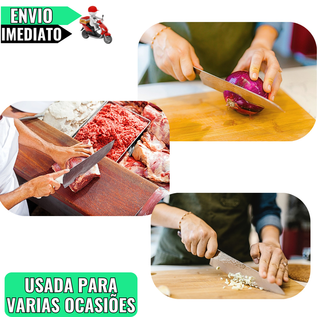 SEJA MUITO BEM-VINDO À Donna Virtual! Kit 12 Facas de Chef 6" em Aço Inox com Cabo de Madeira Corte Preciso para Churrasco Cozinha Profissional e Restaurantes Este Kit com 12 Facas de Chef de 6 polegadas é indispensável para quem busca precisão, durabilidade e estilo na cozinha. Fabricadas em aço inoxidável de alta qualidade, essas facas oferecem cortes precisos e uma lâmina afiada que facilita o preparo de alimentos. O cabo de madeira natural proporciona um manuseio confortável, seguro e ergonômico, sendo ideal para uso doméstico ou profissional. Seja para cortar carnes, legumes, frutas ou ervas, essas facas são projetadas para atender às necessidades dos cozinheiros mais exigentes. Combinam funcionalidade e elegância, tornando-se o acessório perfeito para sua cozinha. Características do Produto: - Lâmina: Aço inoxidável resistente à corrosão, com fio duradouro para cortes precisos. - Cabo: Madeira natural com design ergonômico, oferecendo conforto e segurança no manuseio. - Tamanho Total: Aproximadamente 28 cm (incluindo lâmina e cabo). - Uso Versátil: Perfeita para cortes de carnes, vegetais, frutas e outros alimentos. - Design Elegante: Acabamento refinado, ideal para cozinhas modernas e tradicionais. - Manutenção: Lavar à mão e secar imediatamente para preservar o fio da lâmina e o cabo de madeira. Adquira já o Kit com 12 Facas de Chef Profissionais de 6" e transforme sua experiência na cozinha com utensílios de alta qualidade que garantem cortes precisos e desempenho excepcional!