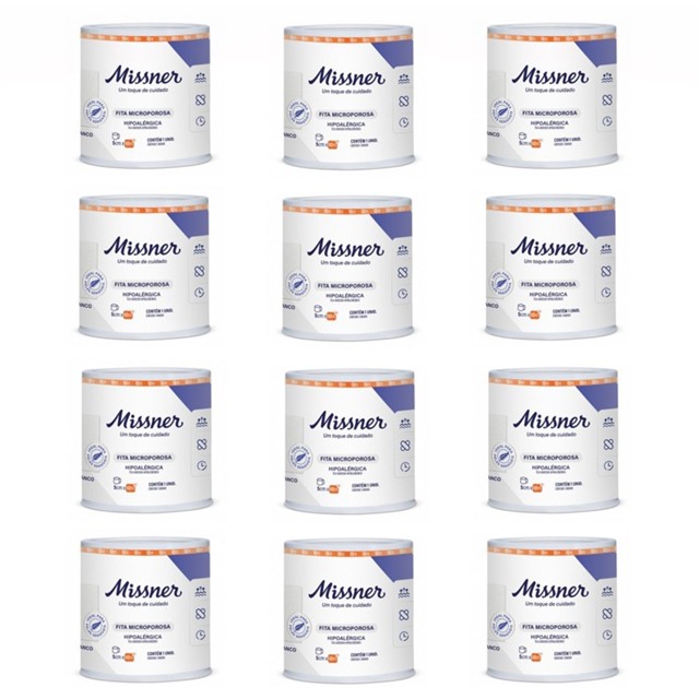 Kit 12 Fita Cirúrgica Microporosa Branca 5cm X 10m - Missner