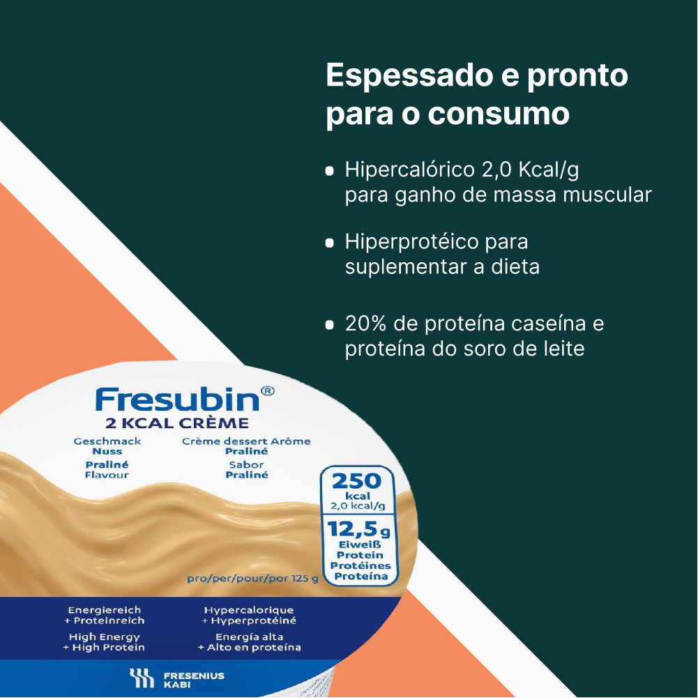 | KIT 12 FRESUBIN 2 KCAL CREME PRALINE 125G FRESENIUS KABI este produto | R$ 418,80 | — | 5.0/5 | 3 |