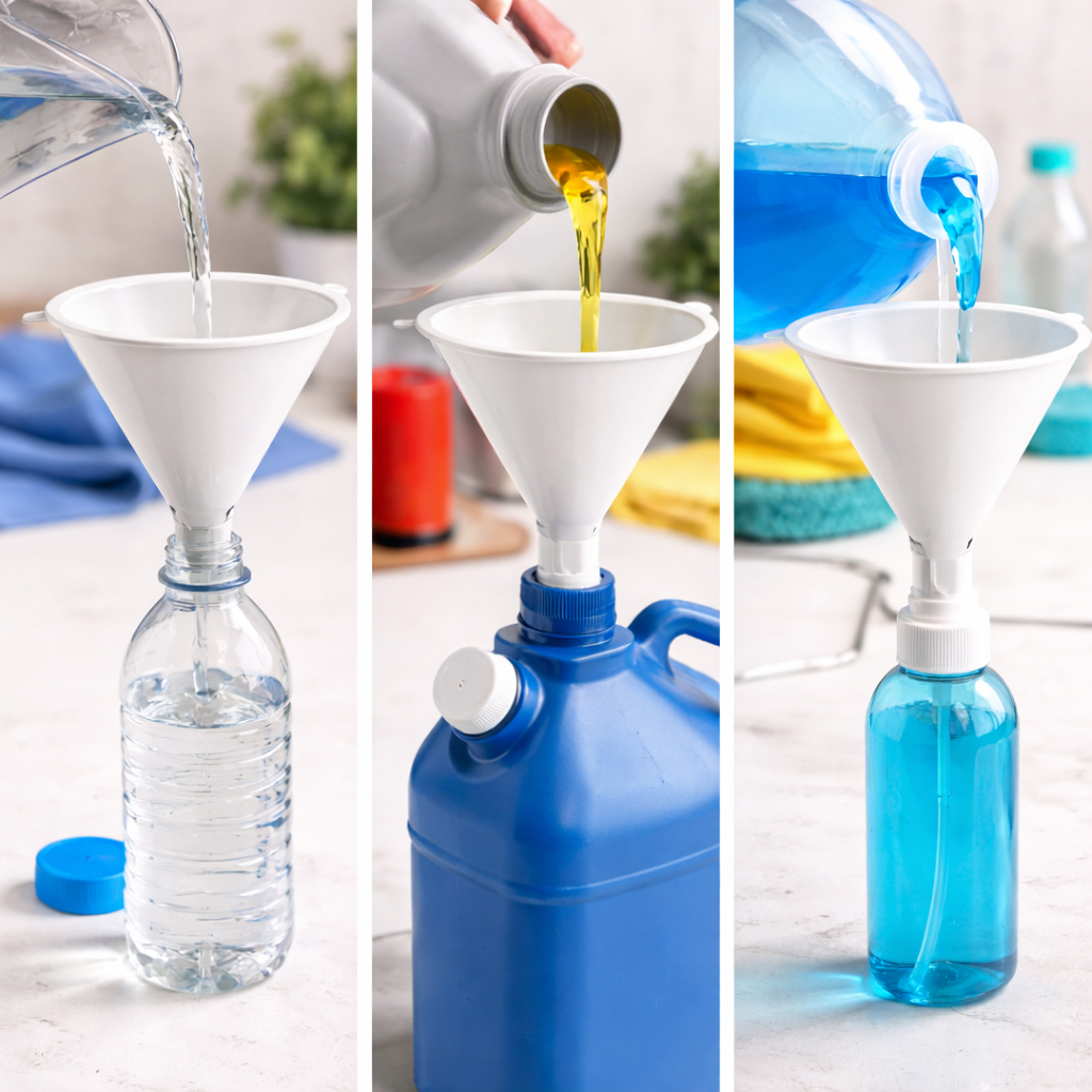 Kit 12 Funil de Plástico 10cm Multiuso Para Cozinha Garrafa Óleo Combustível Líquidos Não Transborda