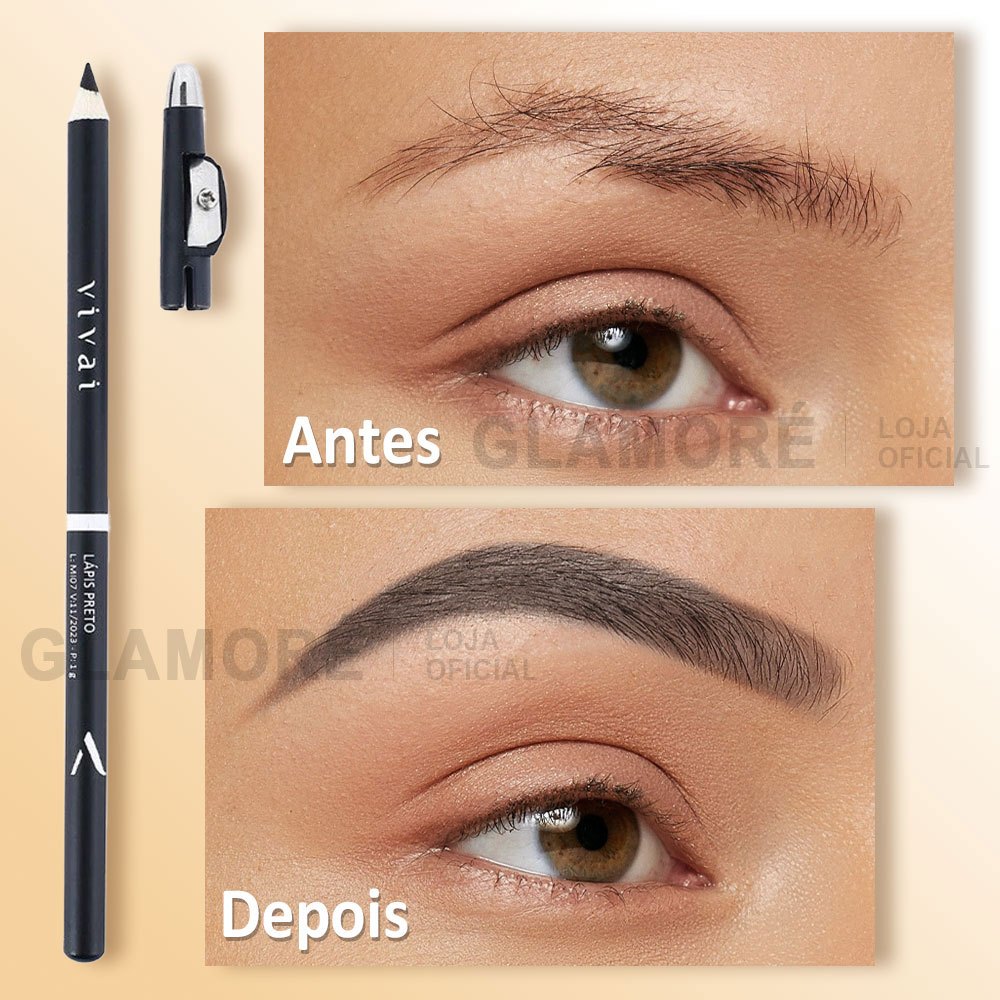 Kit 12 Lápis de Sobrancelha Vivai Preto | Com Apontador | Traço Preciso