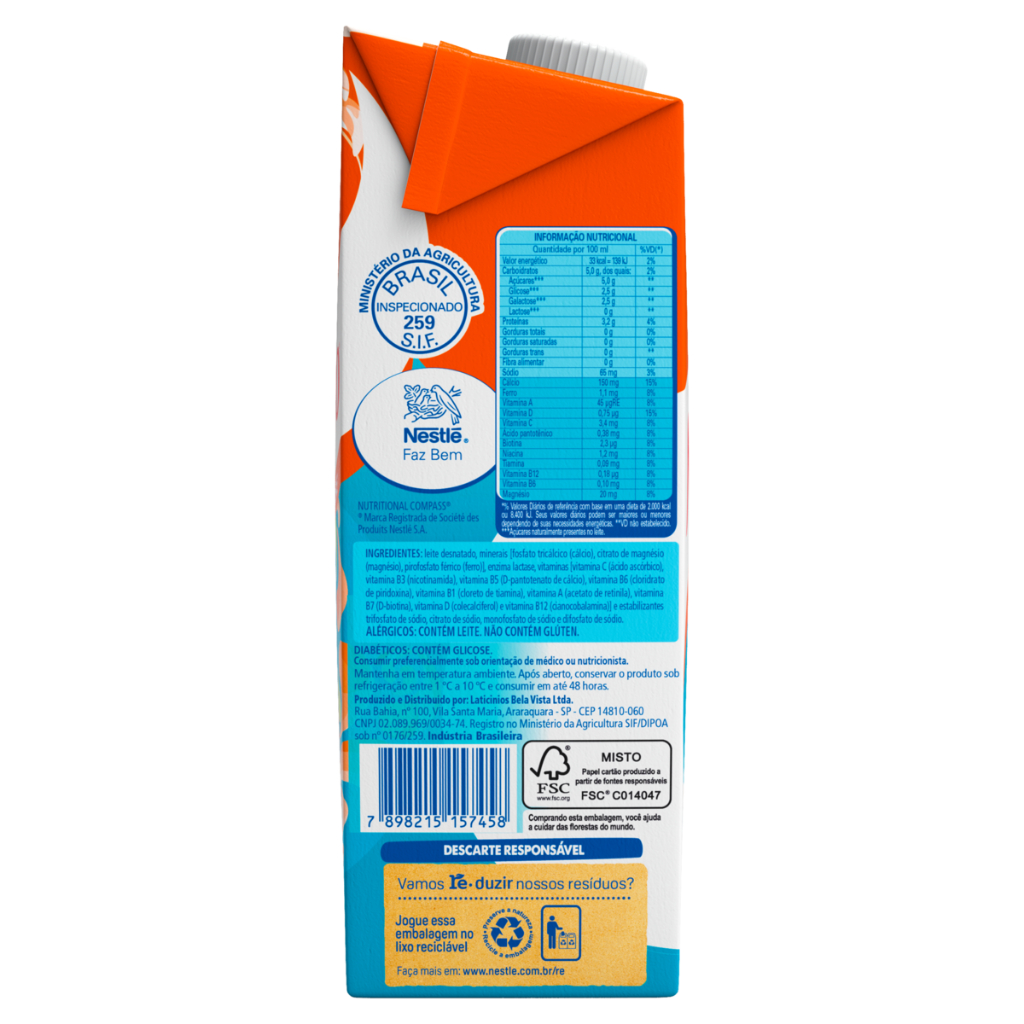 Kit 12 Leite UHT Molico Zero Lactose 1L - Nestle cada. O Leite UHT Molico Zero Lactose 1L é a escolha ideal para quem busca nutrição completa, sabor natural e praticidade, sem abrir mão do conforto digestivo. Desenvolvido especialmente para pessoas intolerantes à lactose, este leite preserva todos os nutrientes do leite tradicional, proporcionando proteínas, vitaminas e minerais essenciais para o dia a dia. Com embalagem longa vida (UHT) de 1 litro, garante praticidade, conservação prolongada e facilidade de armazenamento, sendo perfeito para consumo diário puro ou em receitas culinárias. Benefícios Nutricionais: Zero lactose: adequado para pessoas intolerantes, evitando desconfortos digestivos. Proteínas de alto valor biológico: essenciais para o crescimento, manutenção e reparo da massa muscular. Cálcio: importante para a saúde de ossos e dentes, contribuindo para o desenvolvimento físico de crianças e adolescentes e manutenção em adultos. Vitaminas do complexo B: auxiliam no metabolismo energético, ajudando o corpo a transformar os alimentos em energia. Vitamina D: potencializa a absorção de cálcio e fósforo, fortalecendo ossos e dentes. Vitamina A: importante para a saúde da visão, pele e sistema imunológico. Informações nutricionais (porção de 200ml – valores aproximados): Valor energético: 80 kcal Proteínas: 7g Carboidratos: 9g Gorduras totais: 2g Cálcio: aproximadamente 30% da recomendação diária Vitaminas A, D e do complexo B (Valores médios; consulte a embalagem oficial para informações precisas) Modo de consumo: Agite antes de beber. Consumir gelado para melhor sabor. Pode ser utilizado em receitas doces e salgadas, vitaminas, bolos, molhos e sobremesas. Informações para alérgicos: Contém leite e derivados. Não indicado para pessoas com alergia à proteína do leite. O Leite UHT Molico Zero Lactose 1L combina nutrição, praticidade e sabor, oferecendo todos os benefícios do leite tradicional de forma segura para pessoas intolerantes à lactose, auxiliando na saúde óssea, desenvolvimento muscular e bem-estar geral.