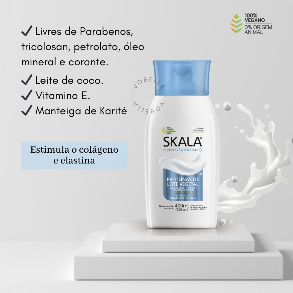 Oii, é um prazer ter você aqui! Quer uma pele intensamente hidratada e macia por mais tempo? Descubra o poder do Kit 12 Loção Creme Hidratante Corporal Proteína Leite Skala! Ideal para quem quer garantir hidratação e nutrição profundas, esse kit vai além do cuidado diário, oferecendo um tratamento acessível e eficaz para uma pele mais bonita e saudável! O que é: - Kit 12 Loção Creme Hidratante Corporal Proteína Leite. - Marca: Skala. - Fragrância: Leite de coco. - Vegano. O que tem: - 12 Loção creme hidratante corporal proteína do leite 400ml. - Leite de coco. - Vitamina E. - Manteiga de karité. O que faz: - Estimula o colágeno e a elastina. - Hidratação. - Desodorante corporal. Indicado para: - Todos os tipos de pele. Como usar: - Limpe a pele e seque. - Aplique uma quantidade fazendo movimentos circulares. - Deixe a pele absorver o produto. - Use diariamente. Precauções de uso: - Evite excesso. - Deixe secar completamente o produto. - Não ingerir. Experimente o Kit 12 Loção Creme Hidratante Corporal Proteína Leite Skala e sinta o toque macio e hidratado de uma pele renovada todos os dias! Adquira já e sinta o poder da proteína de leite no cuidado com seu corpo. Surgiu alguma dúvida? Entre em contato com a gente! Boas Compras :)