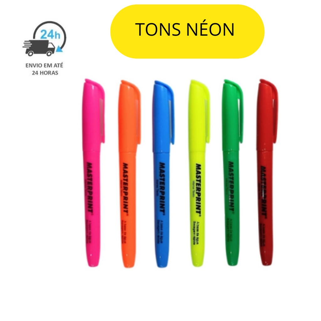 Kit 12 Marca Texto (6 Néon + 6 Pastel) + 2 Bloco Adesivo Seta e Reto Marcador de Página MASTERPRINT -Enviamos todos os nossos produtos na embalagem original MASTERPRINT. -Faremos o envio em até 24h após a confirmação do pagamento. Kit Marca Texto vai com as cores: ROSA NÉON, AZUL NÉON, AMARELO NÉON, VERMELHO NÉON, LARANJA NÉON, VERDE NÉON + ROSA PASTEL, ROSE PASTEL, AZUL PASTEL, VERDE PASTEL, LILAS PASTEL, AMARELO PASTEL. Kit Bloco Adesivo: Reto vai com 5 cores diferentes em néon e cada cor com 25 adesivos= 125 adesivos Seta vai com 5 cores diferentes em néon e cada cor com 25 adesivos= 125 adesivos Qualquer dúvida é só entrar em contato pelo chat.