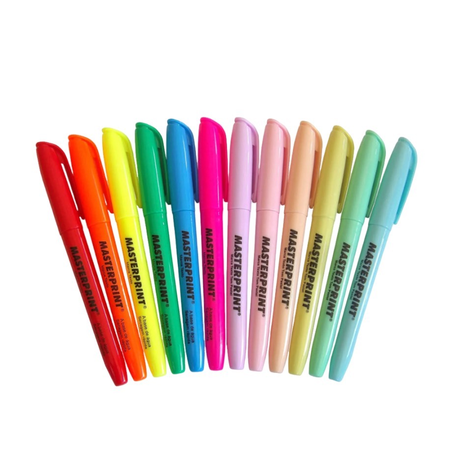 Kit 12 Marca Texto (6 Neon + 6 pastel) Masterprint + 5 Canetas Esferográficas Wow 0.7mm Coloridas