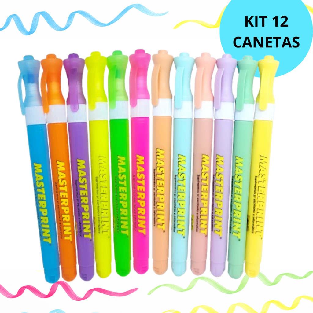 Kit 12 Marca Texto Masterprint (6 Neons + 6 Pastéis)