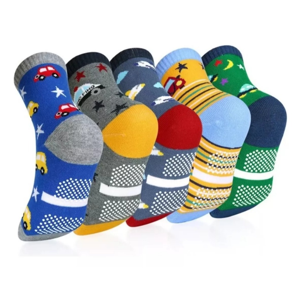 Kit 12 Meias Antiderrapantes Menino – Colorido com Solado Emborrachado