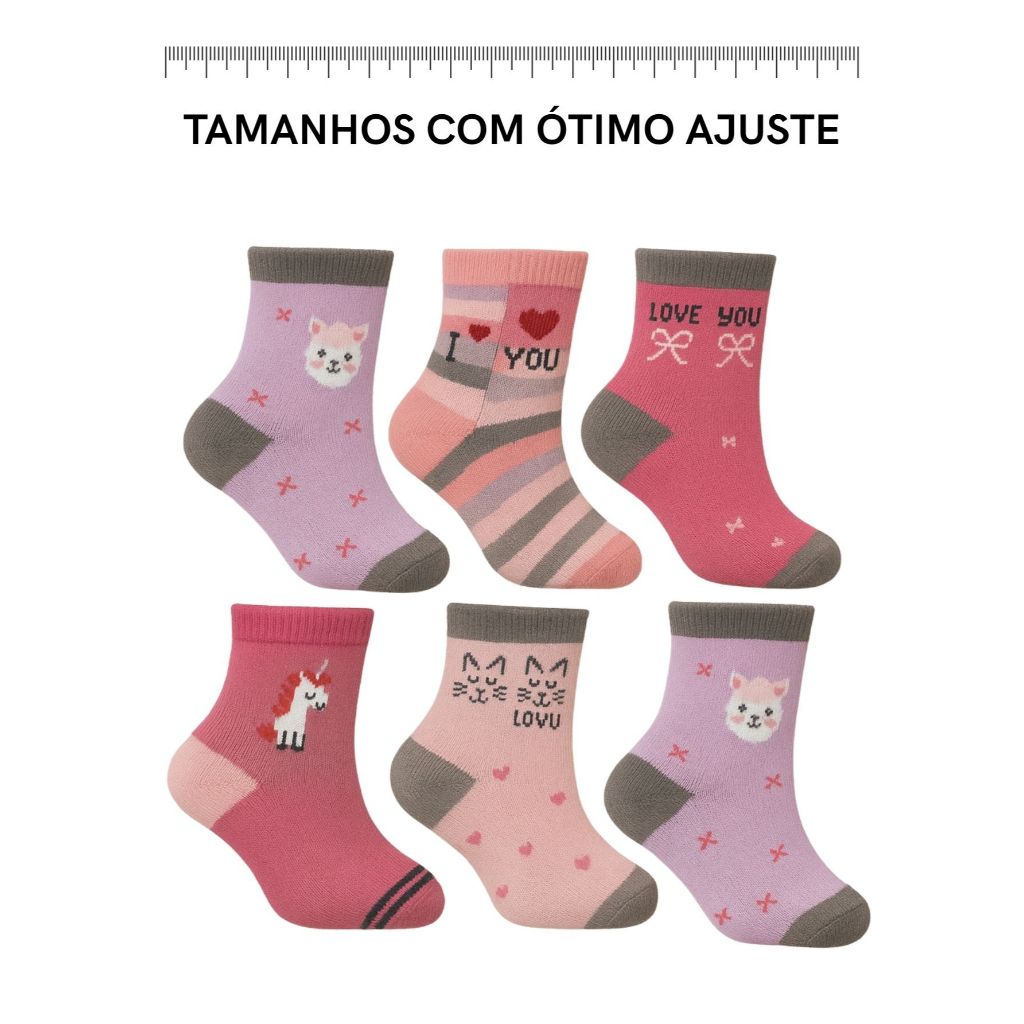 Kit 12 Meias Infantis para Menina – Estampas Enviadas Aleatoriamente - Coloridas, Confortáveis e Cheias de Estilo