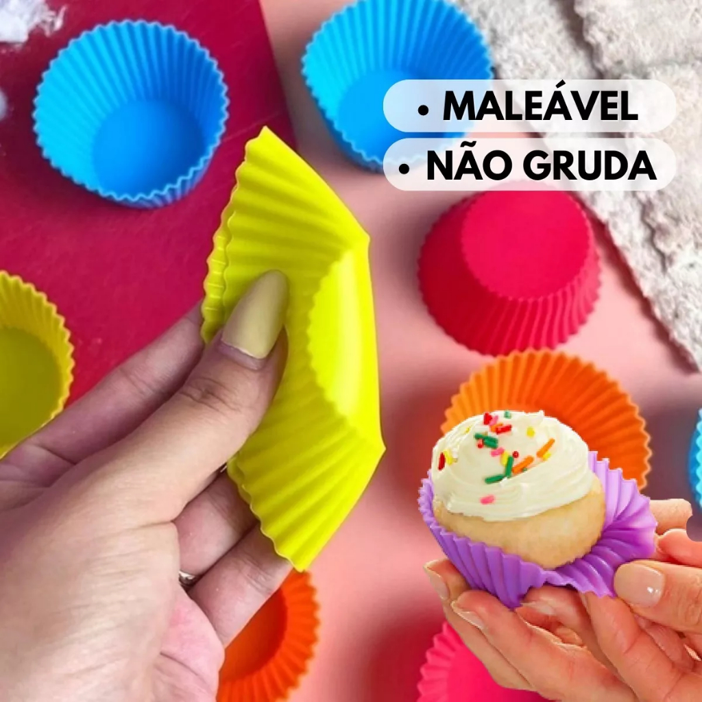 KIT 12 Mini Forminha De Silicone Para Bolo Forma De Cupcakes Prático E Ùtil Colorido FREE BPA