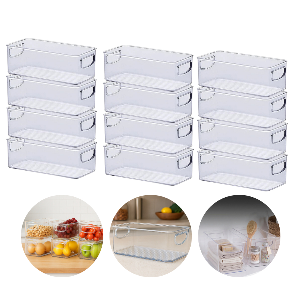 Kit 12 Organizadores Multiuso Armário Dispensa Gavetas Acessórios Casa Acrílico Empilhavel Geladeira