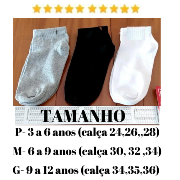 TEMOS O ENVIO MAIS RÁPIDO!!! Fabricação a todo vapor, comprar ates de 12:00 enviamos no msm dia, após esse horário enviamos no outro dia, envio super rápido!!! ATENÇÃO ( PRODUTO JÁ FICA EMBALADO PARA ENVIO RÁPIDO, POR ISSO NÃO CONSEGUIMOS MUDAR A COR APÓS A COMPRA) PROMOÇÃO MEIA DIRETO DA FABRICA!!! Kit 12 ou 6 pares de meias soquete Modelo: curto Tamanhos: P-(24,26,28) M-(28,30,32) G-(32,34,36) Cores: Kit com Preta, Branca e cinza. Nossos produtos ja fica embalados para fazer seu envio super rápido Somos loja Oficial Shop, conheça nossos outros produtos!!! Qualquer duvida estamos no chat. Tenha um ótimo dia