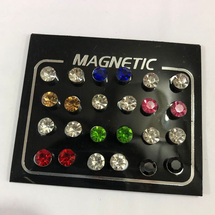 Kit 12 Pares Brincos de Pressão Magnético Zircônia Brilhante Masculino e Feminino/Vários tamanhos 3mm 4mm 5mm 6mm