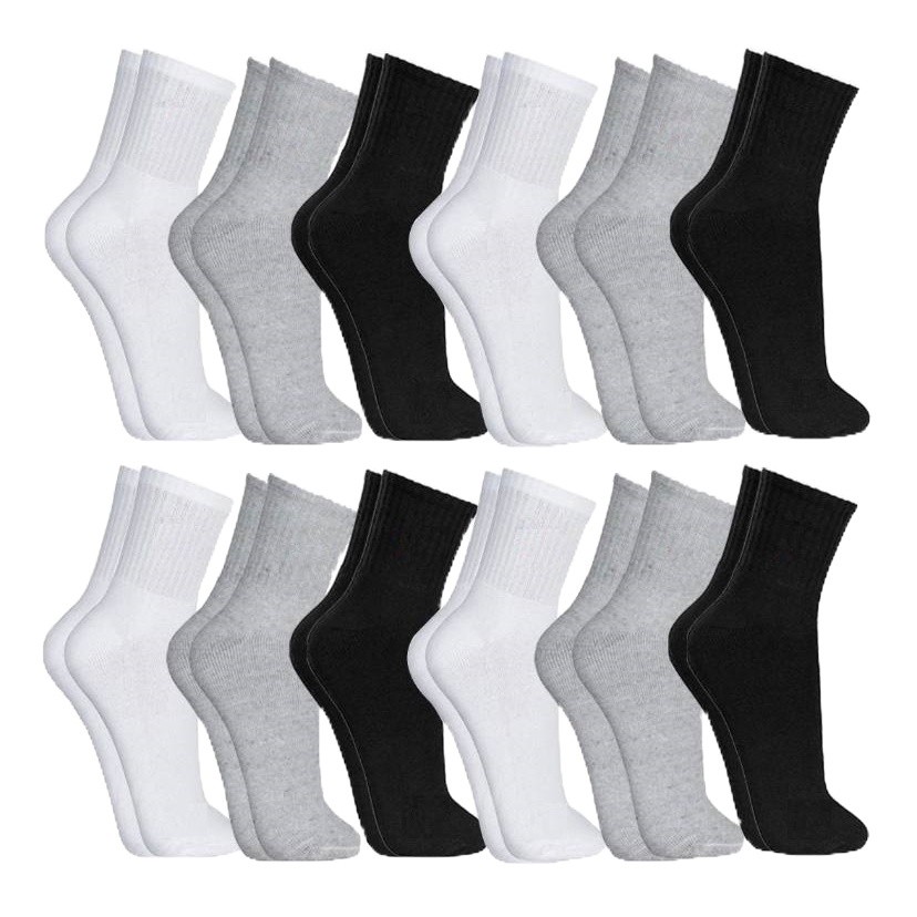 Kit 12 Pares de meia algodão masculina cano alto Kit com 12 pares de meia algodão masculina SPORT OU LISA cano alto, quentinha, confortável e de altíssima qualidade! Recomendada para diversos usos, desde atividade física, esportes, trabalho e mesmo para uso em casa, com todo tipo de calçado. Quantidade: 12 pares Cor: Branca, preta e cinza Modelo: Cano Alto Gênero: Masculino Tamanho: Veste do numero 36 ao 41 Composição: 80% algodão, 18% poliéster e 2% Elastano.