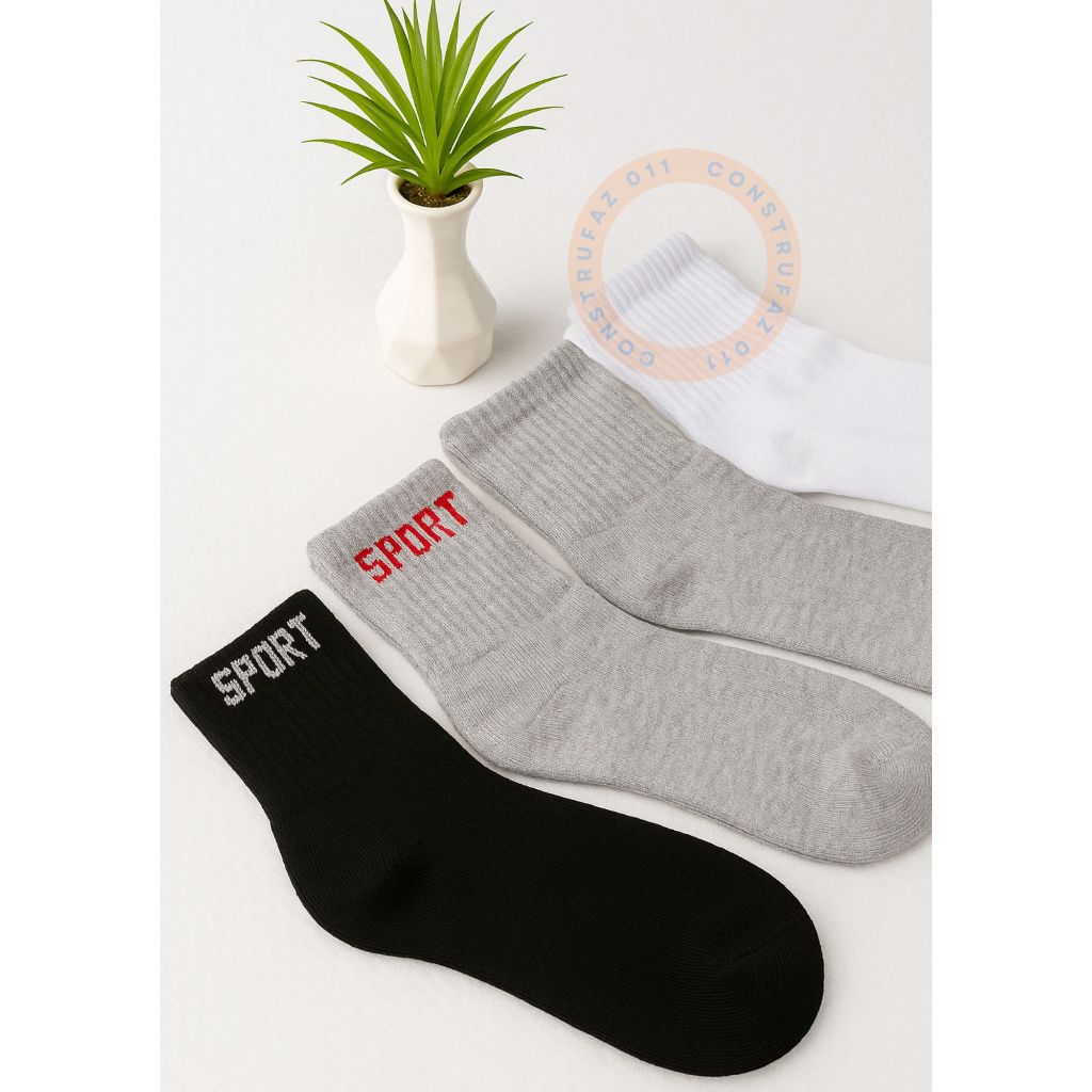 Kit 12 Pares de meia algodão masculina cano alto Kit com 12 pares de meia algodão masculina SPORT OU LISA cano alto, quentinha, confortável e de altíssima qualidade! Recomendada para diversos usos, desde atividade física, esportes, trabalho e mesmo para uso em casa, com todo tipo de calçado. Quantidade: 12 pares Cor: Branca, preta e cinza Modelo: Cano Alto Gênero: Masculino Tamanho: Veste do numero 36 ao 41 Composição: 80% algodão, 18% poliéster e 2% Elastano.