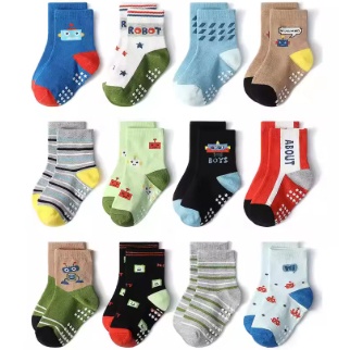 Kit 12 Pares de Meias Bebê Menino Com Antiderrapante