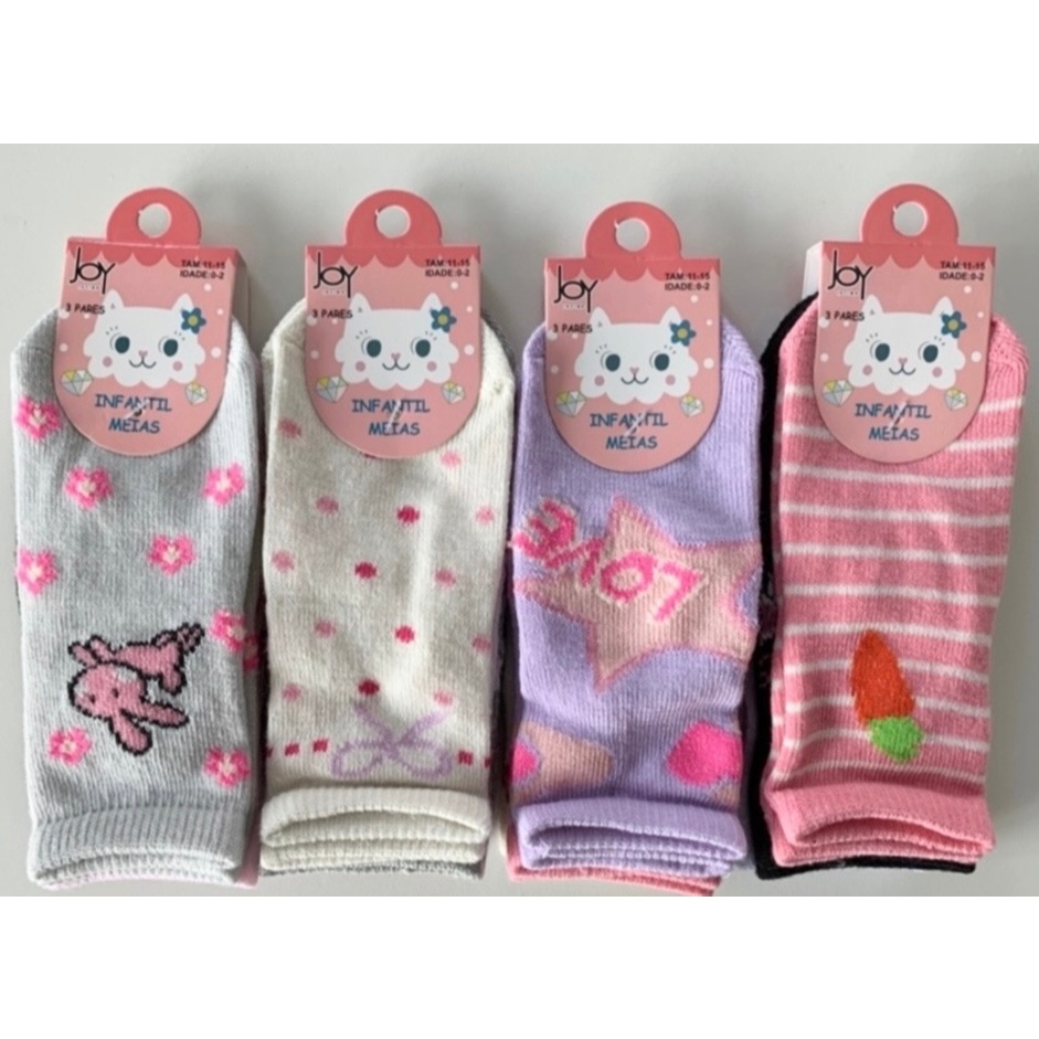 KIT 12 PARES de Meias Infantil Bebe Menina Feminino C/ Antiderrapante S/ Antiderrapante Estampada