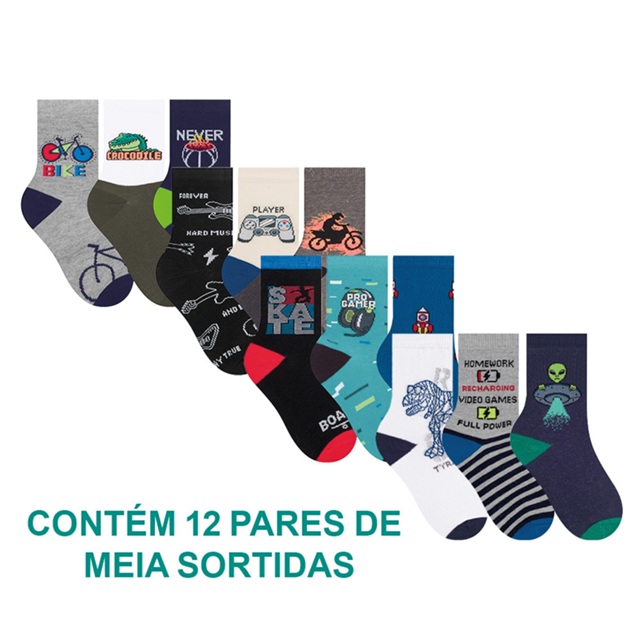 | Kit 12 Pares De Meias Menino Menina Infantil Selene Calcanhar Verda... este produto | R$ 106,99 | — | 4.8/5 | 1 |