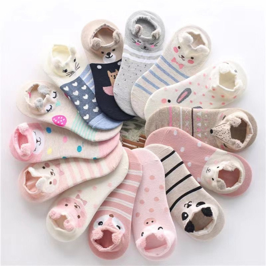 KIT 12 Pares Meia Sapatilha Feminina Adulto Algodão Bichinhos Divertida Criança MK