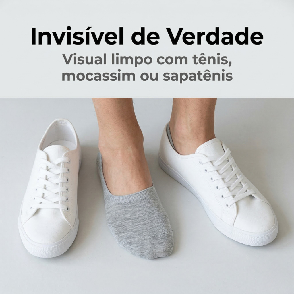 Voce conhece aquela sensacao incomoda de estar ajustando a meia toda hora porque ela escorrega dentro do tenis? Ou pior -- querer usar mocassim ou sapatenis com visual limpo, mas a meia de cano aparece e estraga tudo? Voce nao precisa mais escolher entre conforto e estilo. Meias sapatilha comuns prometem ser invisiveis, mas a realidade e outra: escorregam depois de 5 minutos, o tecido e aspero, dao bolinha na primeira lavagem e voce acaba gastando de novo. A frustracao de sentir que jogou dinheiro fora e real -- e ninguem merece passar o dia inteiro desconfortavel nos pes por causa de uma meia que nao cumpre o basico. Quem trabalha, estuda e vive correndo o dia todo merece conforto nos pes sem pagar caro por isso. Nosso Kit de Meias Sapatilha Invisivel foi desenvolvido para quem cansou de meias que nao funcionam. Com silicone antiderrapante no calcanhar, tecido macio e cores que combinam com tudo, essas meias ficam no lugar o dia inteiro -- sem ajustar, sem incomodar, sem aparecer. Como funciona: 1. Escolha seu kit -- cores variadas que combinam com qualquer calcado 2. Receba em casa -- entrega rapida pelo Mercado Envios 3. Use sem preocupacao -- conforto do primeiro ao ultimo passo do dia BENEFICIOS: - Silicone no calcanhar -- meia que nao escorrega, liberdade para andar, trabalhar e treinar sem ajustar toda hora - Tecido macio e confortavel -- sensacao suave nos pes o dia inteiro, voce esquece que esta usando meia - Design realmente invisivel -- nao aparece no tenis, mocassim ou sapatenis, visual limpo e moderno sem esforco - Cores variadas no kit -- combina com qualquer calcado, praticidade para a semana toda sem repetir - Unissex feminino e masculino -- uma compra resolve para a casa toda, economia inteligente para o casal ou familia - Elasticidade que se adapta ao pe -- ajuste confortavel sem apertar, sem marcas, sem incomodo, sem bolhas APROVADA POR QUEM JA COMPROU: Nossos clientes avaliam com nota alta e dizem com suas proprias palavras: "fica certinho no pe", "nao escorrega", "superou minhas expectativas", "comprarei novamente". Material, conforto e ajuste aprovados por compradores reais -- nao e promessa, e resultado. ESPECIFICACOES: - Modelo: Sapatilha invisivel (nao aparece no calcado) - Genero: Unissex -- feminino e masculino - Silicone antiderrapante interno no calcanhar - Tecido macio com toque suave - Cores variadas (sortidas) - Ideal para: tenis, mocassim, sapatenis, academia, dia a dia - Tamanhos disponiveis: consulte as opcoes no anuncio COMPRA SEGURA: Compra 100% protegida pelo Mercado Pago. Se nao atender suas expectativas, voce tem ate 7 dias para devolver sem complicacao. Aqui a gente confia tanto na qualidade que nao tem medo de garantia. Seus pes merecem conforto de verdade -- garanta seu kit agora e sinta a diferenca desde o primeiro uso. Adicione ao carrinho antes que acabe!