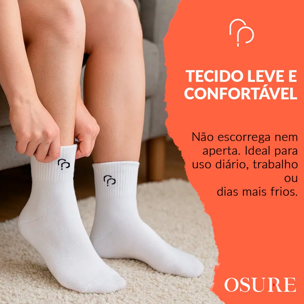 ITENS INCLUSOS: - Kit 12 Pares Meias Cano Longo Rafa Parize Produto 100% Original, com garantia e nota fiscal. DESCRIÇÃO DO PRODUTO: A meia Rafa Parize Comfort cano longo foi pensada para oferecer proteção completa, conforto extremo e respirabilidade em qualquer ocasião. Com cano mais alto, ela é ideal para quem busca segurança contra atrito com o calçado ou proteção extra em dias mais frios. CARACTERÍSTICAS: - Tecido leve e respirável: mantém os pés secos o dia todo - Linha Comfort: maciez e ajuste anatômico - Não escorrega nem aperta: conforto prolongado - Ideal para uso diário, trabalho ou dias mais frios - Toque suave TAMANHOS: - M (33 a 38) - G (39 a 43) COMPOSIÇÃO: - 64,42% Poliéster - 20,08% Algodão - 7,95% Viscose - 4,53% Polipropileno - 1,56% Elastano - 1,46% Elastodieno POSTAGEM: Se o pagamento for confirmado até as 11:00, postamos o pedido no mesmo dia. Exceto sábados, domingos e feriados. INSTITUCIONAL: Há mais de 10 anos no mercado oferecendo a melhor experiência, a Osure é líder de vendas nos marketplaces e continua crescendo mês a mês, sempre prestando um bom atendimento a um preço justo. São mais de 2 milhões de pedidos e clientes bem atendidos. Trabalhamos somente com produtos originais e priorizamos a agilidade na entrega do produto e qualidade no atendimento, visando proporcionar a melhor experiência possível para nossos clientes.
