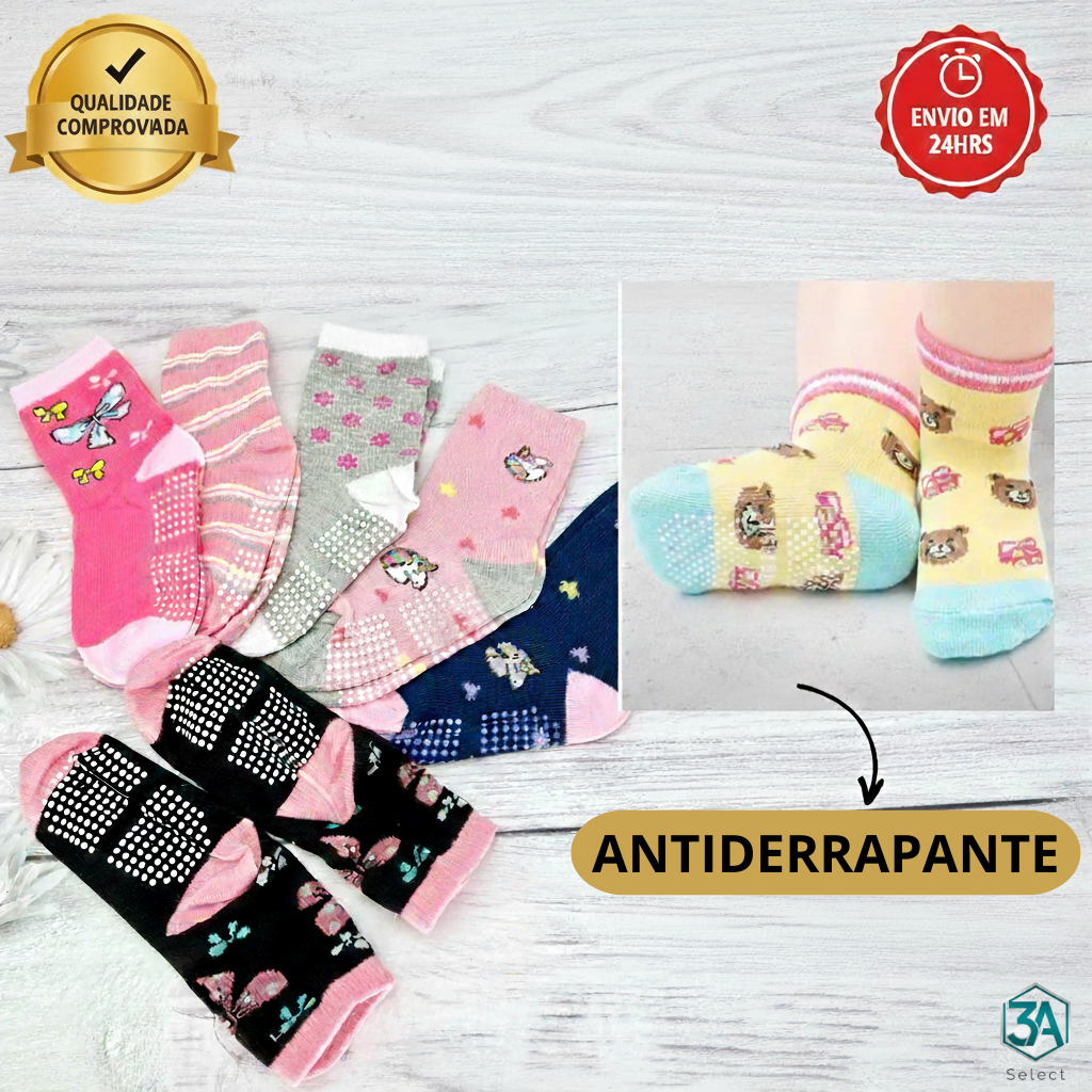 Kit 12 Pares Meias Infantil Menina Bebê Criança Estampada Antiderrapante