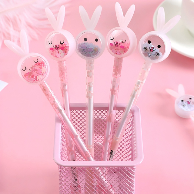 KIT 12 PÇS Canetas de gel 0.5mm ponta fina preto tinta com Coelho rosa/branco e Lantejoulas Papelaria/Escritório