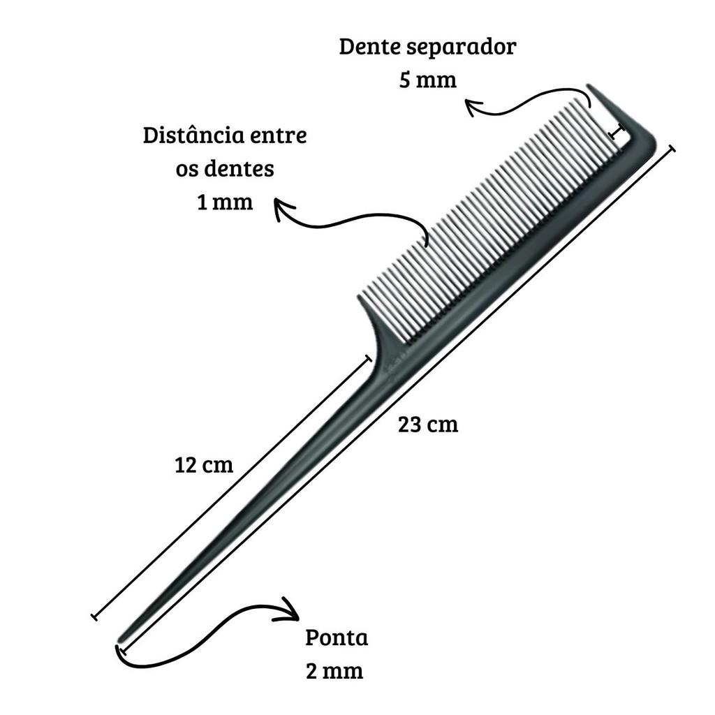 Kit 12 Pente Profissional com Dente Separador de Mechas Luzes e Reflexos